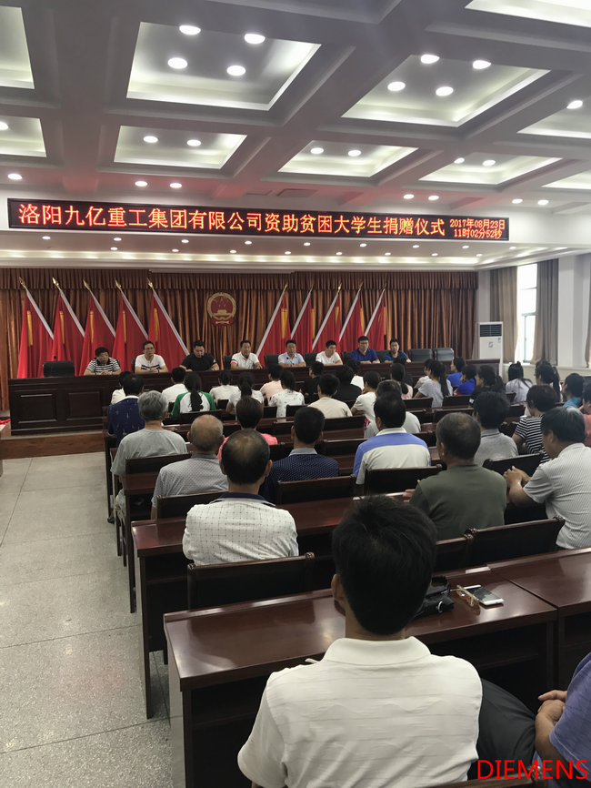 為響應洛陽市政府精準扶貧政策,洛陽九億重工集團有限公司及董事長王九茂積極參與捐資助學的慈善義舉活動,特做出如下決定:1、公司幫扶磁澗鎮(zhèn)2017年新招貧困大學生21名順利入學,每人資助2000元,總計肆萬貳仟元整;